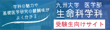 九州大学医学部には基礎医学研究者養成のための4年制のコース、「生命科学科」があります。医学科の学生と一緒に広く基礎医学を学んだあと、研究者になるためのトレーニングを受けることができる、全国的にもユニークな学科です。学生は全国から集まってきています。研究者を目指したい方は是非!