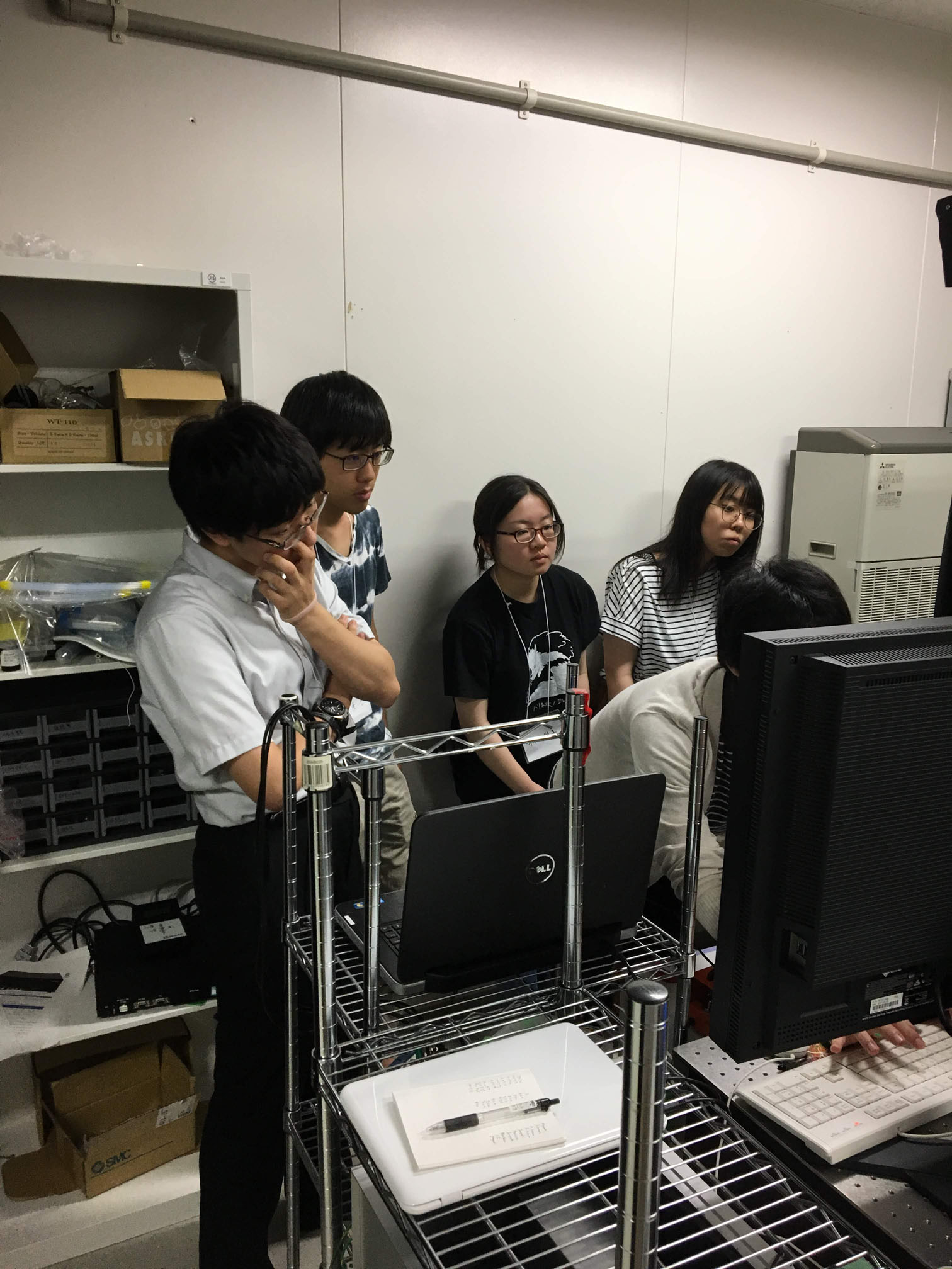 夏休みの研究インターンシップには4名の学生が参加しました(九大医学部3名、学外1名)。インターンシップの学生さん達は毎日夜遅くまで2光子カルシウムイメージングや、データ解析に取り組んでいました。